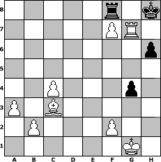 Partie eroeffnet am 01.11.2015, 00:01 Uhr und beendet am 13.01.2016, 18:02 Uhr Spieler weiss: wiesel Spieler schwarz: augustus wiesel hat die Partie gewonnen! | |