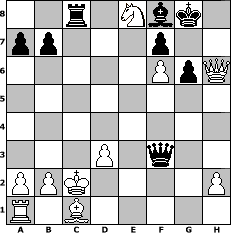 Partie-Notation im PGN-Format [Event "1 PEPSTEIN - Cup 2008"] [Site "www.mySchach.de"] [Date "2008.11.29"] [Round "1"] [White "Juliette2103"] [Black "Andylein1989"] [ECO "C26"] [WhitemyELO "1514"] [BlackmyELO "1726"] [Result "0-1"] [TimeControl "10/1728000"] [WhiteDays "02"] [BlackDays "20"] [MySchachNr "50261"] 1. e4 e5 2. Nc3 Nf6 3. Bc4 Bc5 4. f4 exf4 5. e5 d5 6. exf6 dxc4 7. Qh5 Qd4 8. Nf3 Qf2+ 9. Kd1 g6 10. Qg5 h6 11. Qxf4 Qxg2 12. Re1+ Be6 13. Nb5 O-O 14. Re2 Qh3 15. Nxc7 Bg4 16. Ne5 Bxe2+ 17. Kxe2 Nc6 18. Nxc6 Qg2+ 19. Kd1 Qh1+ 20. Ke2 Qxc6 21. d4 cxd3+ 22. cxd3 Rac8 23. Qxh6 Rfe8+ 24. Nxe8 Qg2+ 25. Kd1 Qf3+ 26. Kc2 Bf8+ 0-1 Stellungs-Notation im FEN-Format 2r1Nbk1/pp3p2/5PpQ/8/8/3P1q2/PPK4P/R1B5 - - - 5 27 Geschlagene Figuren Weiss: Geschlagene Figuren Schwarz: Klicken Sie auf eine geschlagene Figur um den gewünschten Zug darzustellen!