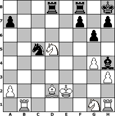 Partie eroeffnet am 29.10.2006, 00:04 Uhr und beendet am 02.01.2007, 15:26 Uhr Spieler weiss: pluc1979 Spieler schwarz: cheldele cheldele hat die Partie gewonnen! | |