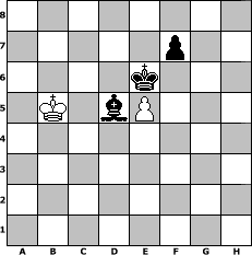 Partie-Notation im PGN-Format [Event "Wargames-kill the King II"] [Site "www.mySchach.de"] [Date "2005.11.18"] [Round "2"] [White "MichaelKnopf"] [Black "romain63"] [ECO "A00"] [WhitemyELO "1642"] [BlackmyELO "1691"] [Result "0-1"] [TimeControl "10/864000"] [WhiteDays "10"] [BlackDays "10"] [MySchachNr "19803"] 1. g3 d5 2. Bg2 c5 3. d4 cxd4 4. Qxd4 e6 5. Nf3 Nc6 6. Qd1 Nf6 7. O-O Qb6 8. c3 a5 9. Nfd2 Bc5 10. c4 O-O 11. cxd5 exd5 12. Nc3 Be6 13. Na4 Qa7 14. Nxc5 Qxc5 15. Nb3 Qb6 16. h3 Ne4 17. e3 a4 18. Nd4 Nxd4 19. exd4 Rfc8 20. Qd3 Bf5 21. Re1 Re8 22. Qf3 Bg6 23. Qa3 Qxd4 24. Be3 Qf6 25. f3 Nxg3 26. Rad1 Nf5 27. Bf2 d4 28. Rxe8+ Rxe8 29. Qc5 Rd8 30. f4 b6 31. Qb5 h6 32. Qxa4 Ne3 33. Bxe3 dxe3 34. Re1 Qxb2 35. Rxe3 Bh5 36. Re8+ Rxe8 37. Qxe8+ Kh7 38. Qe4+ g6 39. a4 Qf6 40. Qe5 Qxe5 41. fxe5 Kg7 42. Kf2 Kf8 43. Ke3 Ke7 44. Kd4 Kd7 45. Bd5 g5 46. Kc3 Bg6 47. Kc4 h5 48. Kb5 Kc7 49. Ka6 g4 50. hxg4 hxg4 51. Kb5 g3 52. Kb4 Bd3 53. Kc3 Bf1 54. Kb3 g2 55. Bxg2 Bxg2 56. Kb4 Bd5 57. a5 bxa5+ 58. Kxa5 Kd7 59. Kb5 Ke6 0-1 Stellungs-Notation im FEN-Format 8/5p2/4k3/1K1bP3/8/8/8/8 - - - 3 60 Geschlagene Figuren Weiss: Geschlagene Figuren Schwarz: Klicken Sie auf eine geschlagene Figur um den gewünschten Zug darzustellen!