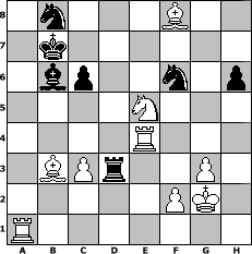Partie-Notation im PGN-Format [Event "MLN Winterturnier 2013"] [Site "www.mySchach.de"] [Date "2013.12.01"] [Round "1"] [White "Grubengeist"] [Black "espero"] [ECO "C00"] [WhitemyELO "1972"] [BlackmyELO "1682"] [Result "1-0"] [TimeControl "10/2592000"] [WhiteDays "30"] [BlackDays "30"] [MySchachNr "91427"] 1. e4 e6 2. d3 d5 3. Nd2 Nf6 4. g3 dxe4 5. dxe4 e5 6. Ngf3 Bc5 7. Bg2 Nc6 8. O-O Bg4 9. c3 Qd3 10. h3 Bxf3 11. Qxf3 O-O-O 12. Re1 a6 13. b4 Bb6 14. Bf1 Qxf3 15. Nxf3 h6 16. a4 Rhe8 17. b5 axb5 18. axb5 Nb8 19. Bc4 Rd7 20. Kg2 g5 21. Ra8 c6 22. bxc6 bxc6 23. Re2 Kb7 24. Ra1 Rd1 25. Bxf7 g4 26. hxg4 Re7 27. Bb3 Rd3 28. Ba3 Rg7 29. Bf8 Rxg4 30. Nxe5 Rxe4 31. Rxe4 1-0 Stellungs-Notation im FEN-Format 1n3B2/1k6/1bp2n1p/4N3/4R3/1BPr2P1/5PK1/R7 - - - 0 31 Geschlagene Figuren Weiss: Geschlagene Figuren Schwarz: Klicken Sie auf eine geschlagene Figur um den gewünschten Zug darzustellen!