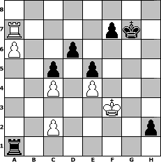 Partie-Notation im PGN-Format [Event "Adevnt Advent "] [Site "www.mySchach.de"] [Date "2018.12.04"] [Round "1"] [White "MiFie"] [Black "beowulf"] [ECO "B30"] [WhitemyELO "1102"] [BlackmyELO "1415"] [Result "0-1"] [TimeControl "10/2592000"] [WhiteDays "177"] [BlackDays "180"] [MySchachNr "113639"] 1. e4 c5 2. Nf3 Nc6 3. Bc4 d6 4. Nc3 Bg4 5. O-O Nf6 6. h3 Bxf3 7. Qxf3 e6 8. d3 Be7 9. Bf4 O-O 10. Qg3 Nh5 11. Qg4 Nxf4 12. Qxf4 Bg5 13. Qg4 Ne5 14. Qg3 Nxc4 15. dxc4 Bf6 16. Nb5 e5 17. Rad1 Be7 18. Rd3 a6 19. Nc3 Bh4 20. Qg4 Qg5 21. Qf3 Qf6 22. Qg4 g6 23. g3 Bg5 24. Rf3 Qd8 25. Nd5 Be7 26. Nxe7+ Qxe7 27. h4 h5 28. Qh3 b5 29. b3 bxc4 30. bxc4 Rab8 31. g4 Qe6 32. Rg3 Kh7 33. gxh5 Qxh3 34. Rxh3 gxh5 35. Ra3 Rg8+ 36. Kh1 Rg4 37. Rxa6 Rxh4+ 38. Kg2 Rg8+ 39. Kf3 Rh3+ 40. Ke2 Rg6 41. Ra7 Kg7 42. a4 h4 43. a5 Ra3 44. a6 h3 45. Rh1 Rg2 46. Kf1 Rf3 47. Ke2 Rgxf2+ 48. Kd1 Rf1+ 49. Rxf1 Rxf1+ 50. Ke2 Ra1 51. Kf3 h2 0-1 Stellungs-Notation im FEN-Format 8/R4pk1/P2p4/2p1p3/2P1P3/5K2/2P4p/r7 - - - 0 52 Geschlagene Figuren Weiss: Geschlagene Figuren Schwarz: Klicken Sie auf eine geschlagene Figur um den gewünschten Zug darzustellen!