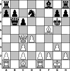 Partie-Notation im PGN-Format [Event "Zeitvertreib f"] [Site "www.mySchach.de"] [Date "2012.02.05"] [Round "1"] [White "Helmut48"] [Black "alibengali"] [ECO "C26"] [WhitemyELO "1865"] [BlackmyELO "1630"] [Result "1-0"] [TimeControl "10/2592000"] [WhiteDays "54"] [BlackDays "31"] [MySchachNr "79712"] 1. e4 e5 2. Nc3 Nf6 3. g3 d5 4. exd5 Nxd5 5. Bg2 Nxc3 6. bxc3 c6 7. Nf3 f6 8. O-O Bg4 9. Re1 Nd7 10. Nxe5 Nxe5 11. Qxg4 Kf7 12. Qa4 Qb6 13. d4 Nd7 14. Qc4+ Kg6 15. Be4+ f5 16. Bxf5+ 1-0 Stellungs-Notation im FEN-Format r4b1r/pp1n2pp/1qp3k1/5B2/2QP4/2P3P1/P1P1PP1P/R1B1R1K1 - - - 0 16 Geschlagene Figuren Weiss: Geschlagene Figuren Schwarz: Klicken Sie auf eine geschlagene Figur um den gewünschten Zug darzustellen!