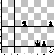 Partie-Notation im PGN-Format [Event "4. Frankenwaldturnier"] [Site "www.mySchach.de"] [Date "2007.09.06"] [Round "2"] [White "muellerh"] [Black "ujack1961"] [ECO "D51"] [WhitemyELO "1502"] [BlackmyELO "1794"] [Result "0-1"] [TimeControl "10/864000"] [WhiteDays "10"] [BlackDays "10"] [MySchachNr "37930"] 1. d4 d5 2. c4 e6 3. Nc3 Nf6 4. Bg5 Nbd7 5. cxd5 exd5 6. Nxd5 Nxd5 7. Bxd8 Bb4+ 8. Qd2 Bxd2+ 9. Kxd2 Kxd8 10. e3 Ne7 11. Nf3 f6 12. Bd3 c5 13. Rac1 b6 14. Rhd1 Bb7 15. Ke2 Rc8 16. dxc5 Rxc5 17. Rxc5 bxc5 18. Bb5 Bc6 19. Bxc6 Nxc6 20. h4 Ke7 21. g3 Nce5 22. Nxe5 Nxe5 23. f4 Nd7 24. a3 Rb8 25. Rd2 Rb6 26. Kf3 Rd6 27. Rc2 Rd1 28. b4 cxb4 29. axb4 f5 30. Rc7 Rb1 31. Rxa7 Rxb4 32. Ra5 g6 33. g4 fxg4+ 34. Kxg4 Kf6 35. Ra7 h5+ 36. Kf3 Nc5 37. Rc7 Ne6 38. Rc6 Rb1 39. Kf2 Rh1 40. Kg3 Kf5 41. Rb6 Rg1+ 42. Kf2 Rg4 43. e4+ Kf6 44. e5+ Kf5 45. Rb7 Rxf4+ 46. Ke3 Rxh4 47. Rf7+ Kxe5 48. Kf3 Rf4+ 49. Rxf4 Nxf4 50. Kg3 g5 51. Kf3 Nd5 52. Kg3 Ke4 53. Kh3 Kf3 54. Kh2 Kf2 55. Kh1 g4 56. Kh2 g3+ 57. Kh1 g2+ 0-1 Stellungs-Notation im FEN-Format 8/8/8/3n3p/8/8/5kp1/7K - - - 0 58 Geschlagene Figuren Weiss: Geschlagene Figuren Schwarz: Klicken Sie auf eine geschlagene Figur um den gewünschten Zug darzustellen!