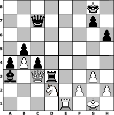 Partie-Notation im PGN-Format [Event "Godzilla Mannschaftsturnier 2013"] [Site "www.mySchach.de"] [Date "2013.08.15"] [Round "1"] [Board "5"] [White "Schefsche"] [Black "Wulfen49"] [ECO "C02"] [WhitemyELO "1453"] [BlackmyELO "1283"] [Result "0-1"] [TimeControl "10/3456000"] [WhiteDays "37"] [BlackDays "40"] [MySchachNr "89740"] 1. e4 e6 2. d4 d5 3. e5 c5 4. Bb5+ Bd7 5. Bxd7+ Nxd7 6. Nf3 Ne7 7. Bg5 h6 8. Bxe7 Bxe7 9. O-O O-O 10. c3 c4 11. b3 b5 12. b4 a5 13. a3 a4 14. Nbd2 f6 15. exf6 Bxf6 16. g3 Qc7 17. Qe2 Rae8 18. Rae1 e5 19. Qd1 e4 20. Ne5 Nxe5 21. dxe5 Bxe5 22. Re3 d4 23. cxd4 Bxd4 24. Rxe4 Bb2 25. Rxe8 Rxe8 26. Re1 Rd8 27. Qc2 Bxa3 28. Qc3 Rd3 0-1 Stellungs-Notation im FEN-Format 6k1/2q3p1/7p/1p6/pPp5/b1Qr2P1/3N1P1P/4R1K1 - - - 2 29 Geschlagene Figuren Weiss: Geschlagene Figuren Schwarz: Klicken Sie auf eine geschlagene Figur um den gewünschten Zug darzustellen!