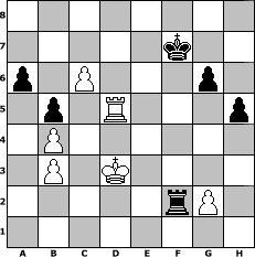 Partie-Notation im PGN-Format [Event "Winter 2011/12"] [Site "www.mySchach.de"] [Date "2011.12.22"] [Round "1"] [White "Erich"] [Black "HPB2005"] [ECO "B44"] [WhitemyELO "2016"] [BlackmyELO "1936"] [Result "1-0"] [TimeControl "10/2592000"] [WhiteDays "150"] [BlackDays "115"] [MySchachNr "78382"] 1. e4 c5 2. Nf3 e6 3. d4 cxd4 4. Nxd4 Nc6 5. Nf3 Nf6 6. Bd3 Bc5 7. O-O d5 8. Nc3 h6 9. exd5 exd5 10. Re1+ Be6 11. Bf5 Qd7 12. Qe2 O-O 13. Bxe6 fxe6 14. Qxe6+ Qxe6 15. Rxe6 Rfe8 16. Rxe8+ Rxe8 17. Kf1 d4 18. Ne2 Ne4 19. Nf4 Nb4 20. Ne1 Bd6 21. a3 Bxf4 22. axb4 Bxh2 23. Nf3 Bb8 24. Nxd4 Be5 25. Be3 a6 26. Rd1 Bf6 27. c3 Ng3+ 28. Ke1 Bg5 29. Nc2 Nf5 30. Rd7 Bxe3 31. Nxe3 b5 32. Ke2 Kf8 33. b3 Re6 34. c4 h5 35. Rd5 g6 36. Kd3 Ne7 37. Rd8+ Kf7 38. Nd5 Nxd5 39. Rxd5 Rf6 40. c5 Rxf2 41. c6 1-0 Stellungs-Notation im FEN-Format 8/5k2/p1P3p1/1p1R3p/1P6/1P1K4/5rP1/8 - - - 0 41 Geschlagene Figuren Weiss: Geschlagene Figuren Schwarz: Klicken Sie auf eine geschlagene Figur um den gewünschten Zug darzustellen!