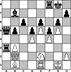 Partie-Notation im PGN-Format [Event "Sommer"] [Site "www.mySchach.de"] [Date "2015.07.14"] [Round "1"] [White "Andylein1989"] [Black "Seneca"] [ECO "B07"] [WhitemyELO "1501"] [BlackmyELO "1534"] [Result "0-1"] [TimeControl "10/1728000"] [WhiteDays "60"] [BlackDays "56"] [MySchachNr "99713"] 1. e4 d6 2. Nf3 Nf6 3. Nc3 g6 4. Bc4 Bg7 5. d3 O-O 6. O-O c6 7. Bb3 b5 8. a3 a5 9. Bd2 Nfd7 10. Rb1 Nc5 11. Ba2 e6 12. Qc1 Nbd7 13. Re1 Ne5 14. Nxe5 Bxe5 15. f4 Bg7 16. Ne2 d5 17. e5 Re8 18. Ng3 a4 19. d4 Nd7 20. b3 axb3 21. cxb3 Nb6 22. Ne2 Bb7 23. Bb4 Bh6 24. g4 f5 25. g5 Bf8 26. Bxf8 Rxf8 27. Qc3 Rxa3 28. Rb2 Qa8 29. Bb1 Na4 30. Qc2 Nxb2 31. Qxb2 Qa5 0-1 Stellungs-Notation im FEN-Format 5rk1/1b5p/2p1p1p1/qp1pPpP1/3P1P2/rP6/1Q2N2P/1B2R1K1 - - - 1 32 Geschlagene Figuren Weiss: Geschlagene Figuren Schwarz: Klicken Sie auf eine geschlagene Figur um den gewünschten Zug darzustellen!