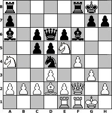 | Partie-Notation im PGN-Format [Event "READY TO RUMBLE!!!"] [Site "www.mySchach.de"] [Date "2004.01.27"] [Round "1"] [White "Vouivre"] [Black "JerryWho"] [ECO "B21"] [WhitemyELO "1459"] [BlackmyELO "1499"] [Result "1/2-1/2"] [TimeControl "10/3456000"] [WhiteDays "75"] [BlackDays "50"] [MySchachNr "2038"] 1. e4 c5 2. f4 Nc6 3. Nf3 d6 4. Bc4 e6 5. Nc3 Be7 6. O-O Nh6 7. d3 f5 8. exf5 Nxf5 9. Qe1 d5 10. Bb5 Qd6 11. Ne5 Nfd4 12. Bxc6+ bxc6 13. Qf2 O-O 14. Be3 Nf5 15. Bd2 Bh4 16. g3 Bf6 17. Rae1 Ba6 18. Na4 Nd4 1/2-1/2 Stellungs-Notation im FEN-Format r4rk1/p5pp/b1pqpb2/2ppN3/N2n1P2/3P2P1/PPPBPQ1P/4RRK1 - - - 5 19 Geschlagene Figuren Weiss:                              Geschlagene Figuren Schwarz:                               Klicken Sie auf eine geschlagene Figur um den gewünschten Zug darzustellen!