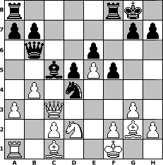 Partie-Notation im PGN-Format [Event "Verschachert #2"] [Site "www.mySchach.de"] [Date "2012.11.04"] [Round "1"] [White "gunni50"] [Black "Haki"] [ECO "C02"] [WhitemyELO "1228"] [BlackmyELO "1338"] [Result "1-0"] [TimeControl "10/864000"] [WhiteDays "15"] [BlackDays "16"] [MySchachNr "84830"] 1. e4 e6 2. d4 d5 3. e5 c5 4. dxc5 Bxc5 5. Nf3 Ne7 6. Nbd2 Qb6 7. Qe2 Nbc6 8. g3 O-O 9. Bg2 Nf5 10. a3 Nfd4 11. Nxd4 Nxd4 12. Qd3 f5 13. O-O Bd7 14. b4 Bb5 15. Qc3 Bxf1 16. Kxf1 1-0 Stellungs-Notation im FEN-Format r4rk1/pp4pp/1q2p3/2bpPp2/1P1n4/P1Q3P1/2PN1PBP/R1B2K2 - - - 0 16 Geschlagene Figuren Weiss: Geschlagene Figuren Schwarz: Klicken Sie auf eine geschlagene Figur um den gewünschten Zug darzustellen!