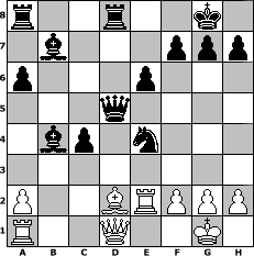 Partie-Notation im PGN-Format [Event "Sommer 2010"] [Site "www.mySchach.de"] [Date "2010.06.15"] [Round "1"] [White "gunni50"] [Black "Robert"] [ECO "B50"] [WhitemyELO "1230"] [BlackmyELO "1582"] [Result "0-1"] [TimeControl "10/1728000"] [WhiteDays "57"] [BlackDays "36"] [MySchachNr "66320"] 1. e4 c5 2. Nf3 d6 3. Bc4 a6 4. Nc3 e6 5. d4 b5 6. Bd3 cxd4 7. Nxd4 Bb7 8. O-O Nf6 9. b4 Qc7 10. Re1 Qxc3 11. Be3 Nc6 12. Nxc6 Qxc6 13. Qe2 Be7 14. c4 O-O 15. Bd2 bxc4 16. Bc2 Rfd8 17. Qd1 d5 18. exd5 Qxd5 19. Be4 Nxe4 20. Re2 Bxb4 0-1 Stellungs-Notation im FEN-Format r2r2k1/1b3ppp/p3p3/3q4/1bp1n3/8/P2BRPPP/R2Q2K1 - - - 0 21 Geschlagene Figuren Weiss: ![]() ![]() ![]() ![]() ![]() ![]() ![]() ![]() ![]() ![]() ![]() ![]() ![]() ![]() ![]() Geschlagene Figuren Schwarz: ![]() ![]() ![]() ![]() ![]() ![]() ![]() ![]() ![]() ![]() ![]() ![]() ![]() ![]() ![]() Klicken Sie auf eine geschlagene Figur um den gewünschten Zug darzustellen!