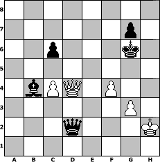 Partie-Notation im PGN-Format [Event "Lass den Drachen krachen"] [Site "www.mySchach.de"] [Date "2025.01.31"] [Round "1"] [White "Ziegert"] [Black "Leon"] [ECO "C67"] [WhitemyELO "1994"] [BlackmyELO "2008"] [Result "0-1"] [TimeControl "10/2592000"] [WhiteDays "005"] [BlackDays "203"] [MySchachNr "132878"] 1. e4 e5 2. Nf3 Nc6 3. Bb5 Nf6 4. O-O Nxe4 5. Re1 Nd6 6. Bf1 f6 7. d4 Nf7 8. dxe5 fxe5 9. Bc4 d6 10. Qd5 Qe7 11. Qb5 a6 12. Qa4 Be6 13. Nc3 Qd7 14. Be3 Bxc4 15. Qxc4 Be7 16. Rad1 O-O 17. a4 Kh8 18. Nd5 Rae8 19. b4 Bd8 20. Qe4 Nd4 21. Bxd4 exd4 22. Qxd4 Qxa4 23. Rxe8 Rxe8 24. Qc3 c6 25. Ne3 Bf6 26. Qd2 Qa3 27. Nc4 Qc3 28. Nxd6 Nxd6 29. Qxd6 h6 30. Rc1 Rd8 31. Qf4 Qb2 32. g3 Bc3 33. Kg2 Qxb4 34. Qc7 Rf8 35. Rd1 a5 36. Rd8 a4 37. Rxf8+ Qxf8 38. Qxb7 Qe8 39. Qa7 Qe4 40. Qb7 Kh7 41. h4 Bb4 42. Qf7 a3 43. Qb3 Bc5 44. c3 Qd3 45. Qf7 Qc2 46. Ng5+ hxg5 47. Qh5+ Kg8 48. Qe8+ Kh7 49. Qh5+ Kg8 50. Qe8+ Bf8 51. hxg5 Qf5 52. g6 Qd5+ 53. Kh2 a2 54. Qa8 Qe6 55. Qa6 Qxg6 56. Qxa2+ Qf7 57. Qe2 Be7 58. f4 Qf6 59. c4 Kf7 60. Qd2 Qf5 61. Qd4 Qc2+ 62. Kh1 Qe2 63. Kg1 Kg6 64. Qa7 Bb4 65. Qd4 Qe1+ 66. Kh2 Qd2+ 0-1 Stellungs-Notation im FEN-Format 8/6p1/2p3k1/8/1bPQ1P2/6P1/3q3K/8 - - - 15 67 Geschlagene Figuren Weiss: Geschlagene Figuren Schwarz: Klicken Sie auf eine geschlagene Figur um den gewünschten Zug darzustellen!