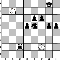 Partie-Notation im PGN-Format [Event "Blitz-Fernschach-Turnier"] [Site "www.mySchach.de"] [Date "2004.09.12"] [Round "2"] [White "Juri"] [Black "tschulz"] [ECO "B06"] [WhitemyELO "1441"] [BlackmyELO "1244"] [Result "0-1"] [TimeControl "10/864000"] [WhiteDays "10"] [BlackDays "10"] [MySchachNr "6826"] 1. e4 g6 2. d4 Bg7 3. e5 d6 4. f4 Nh6 5. Nc3 c6 6. g3 O-O 7. Bh3 e6 8. Qd3 b5 9. a3 Ba6 10. b4 Bb7 11. Bg2 Qd7 12. Nh3 c5 13. Bxb7 Qxb7 14. O-O c4 15. Qf3 d5 16. a4 a5 17. bxa5 b4 18. Rb1 Rxa5 19. Ba3 Nc6 20. Rb2 Nf5 21. Rfb1 Qa7 22. Nb5 Nfxd4 23. Nxa7 Nxf3+ 24. Kf2 Rxa7 25. Bxb4 Nxb4 26. Rxb4 Nxh2 27. Ng5 h6 28. Nf3 Ng4+ 29. Ke2 Rfa8 30. Ra1 Bf8 31. Rb6 Rxa4 32. Rxa4 Rxa4 33. Kd2 Ra3 34. Nd4 Rxg3 35. Nc6 c3+ 36. Ke1 Re3+ 37. Kf1 h5 38. Rb8 Rf3+ 39. Kg2 Rxf4 40. Rb3 Rc4 41. Na5 Rc8 42. Kf3 Nxe5+ 43. Ke3 Bc5+ 44. Kf4 Bd6 45. Ke3 Bc5+ 46. Kf4 f6 47. Rxc3 g5+ 48. Kg3 Bf2+ 49. Kxf2 Rxc3 50. Nb7 Rxc2+ 0-1 Stellungs-Notation im FEN-Format 6k1/1N6/4pp2/3pn1pp/8/8/2r2K2/8 - - - 0 51 Geschlagene Figuren Weiss: ![]() ![]() ![]() ![]() ![]() ![]() ![]() ![]() ![]() ![]() ![]() ![]() ![]() ![]() ![]() Geschlagene Figuren Schwarz: ![]() ![]() ![]() ![]() ![]() ![]() ![]() ![]() ![]() ![]() ![]() ![]() ![]() ![]() ![]() Klicken Sie auf eine geschlagene Figur um den gewünschten Zug darzustellen!