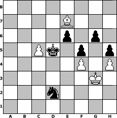 Partie-Notation im PGN-Format [Event "m"] [Site "www.mySchach.de"] [Date "2007.02.22"] [Round "1"] [White "Pinguin"] [Black "Bauer91"] [ECO "B01"] [WhitemyELO "1580"] [BlackmyELO "1624"] [Result "0-1"] [TimeControl "10/864000"] [WhiteDays "24"] [BlackDays "49"] [MySchachNr "32716"] 1. e4 d5 2. exd5 Qxd5 3. Nc3 Qa5 4. d4 Bf5 5. Nf3 e6 6. Bd2 c5 7. Bb5+ Nc6 8. Bxc6+ bxc6 9. Ne4 Qb6 10. dxc5 Bxc5 11. Nxc5 Qxc5 12. c3 Ne7 13. O-O O-O 14. Be3 Qb5 15. b4 Rfd8 16. Qb3 Bd3 17. Rfd1 Be2 18. Rxd8+ Rxd8 19. Nd4 Bc4 20. Nxb5 Bxb3 21. axb3 cxb5 22. Bxa7 Ra8 23. c4 bxc4 24. bxc4 Nc8 25. Bd4 Rxa1+ 26. Bxa1 Kf8 27. c5 Na7 28. f4 g6 29. Be5 Ke7 30. Kf2 Kd7 31. Ke3 Kc6 32. Kd3 Kb5 33. Kc3 Nc6 34. Bd6 Nxb4 35. Kd4 Nc6+ 36. Kc3 Na5 37. g4 Nc4 38. Be7 Ne3 39. Kd4 Nxg4 40. h3 Nf2 41. h4 Ng4 42. Ke4 Kc6 43. Kf3 f5 44. Kg3 h5 45. Kf3 Kd5 46. Kg3 Ne3 47. Kf3 Nc4 48. Kg3 Nd2 0-1 Stellungs-Notation im FEN-Format 8/4B3/4p1p1/2Pk1p1p/5P1P/6K1/3n4/8 - - - 8 49 Geschlagene Figuren Weiss: Geschlagene Figuren Schwarz: Klicken Sie auf eine geschlagene Figur um den gewünschten Zug darzustellen!