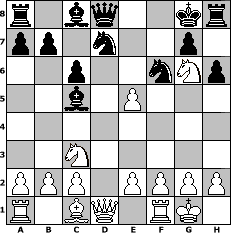8. Bxf7+ Kxf7 9. Nxe5+ Kg8 10. Ng6 Bc5 11. e5 1-0