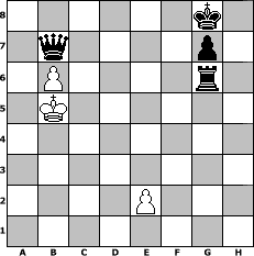 Partie-Notation im PGN-Format [Event "Albspiele 8"] [Site "www.mySchach.de"] [Date "2010.12.11"] [Round "1"] [White "Achimkogge"] [Black "augustus"] [ECO "C44"] [WhitemyELO "1367"] [BlackmyELO "1269"] [Result "0-1"] [TimeControl "10/864000"] [WhiteDays "10"] [BlackDays "10"] [MySchachNr "70527"] 1. e4 e5 2. Nf3 Nc6 3. d4 Nf6 4. dxe5 Nxe4 5. c3 Bc5 6. Be3 Bxe3 7. fxe3 O-O 8. Nbd2 Nc5 9. b4 Ne6 10. Ne4 f5 11. Nc5 f4 12. Nxe6 dxe6 13. Qxd8 Nxd8 14. exf4 Rxf4 15. O-O-O Nf7 16. Bb5 c6 17. Ba4 a5 18. Rd4 Rxd4 19. cxd4 axb4 20. Bb3 h6 21. h4 b6 22. Kb2 Nd8 23. h5 c5 24. d5 Kh7 25. d6 Bd7 26. Rf1 b5 27. Nh4 c4 28. Bc2+ Kg8 29. Ng6 Nb7 30. Ne7+ Kh8 31. Be4 c3+ 32. Kb1 Rb8 33. g4 Nc5 34. Bc2 b3 35. axb3 b4 36. Rf7 Bb5 37. Ng6+ Kg8 38. Re7 Rc8 39. Nf4 Rf8 40. Nxe6 Nxe6 41. Rxe6 Rf1+ 42. Ka2 Rg1 43. Rg6 Rc1 44. Bb1 c2 45. Bxc2 Rxc2+ 46. Kb1 Rc8 47. d7 Bxd7 48. e6 Be8 49. e7 Bxg6+ 50. hxg6 Re8 51. Kc2 Rxe7 52. Kd3 Re6 53. Kc4 Rxg6 54. Kxb4 Rxg4+ 55. Kc3 h5 56. b4 h4 57. b5 Rg6 58. Kc4 h3 59. Kc5 h2 60. b6 h1=Q 61. Kb5 Qb7 0-1 Stellungs-Notation im FEN-Format 6k1/1q4p1/1P4r1/1K6/8/8/4P3/8 - - - 2 62 Geschlagene Figuren Weiss: Geschlagene Figuren Schwarz: Klicken Sie auf eine geschlagene Figur um den gewünschten Zug darzustellen!