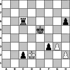 Partie-Notation im PGN-Format [Event "Ferien-Turnier"] [Site "www.mySchach.de"] [Date "2005.07.23"] [Round "1"] [White "Juri"] [Black "ParvusCarlsen"] [ECO "C02"] [WhitemyELO "1234"] [BlackmyELO "1594"] [Result "0-1"] [TimeControl "10/2592000"] [WhiteDays "149"] [BlackDays "126"] [MySchachNr "15393"] 1. e4 e6 2. d4 d5 3. e5 c5 4. c3 Nc6 5. Bb5 Bd7 6. Bxc6 Bxc6 7. Be3 h6 8. dxc5 Qc7 9. Bd4 f6 10. exf6 Nxf6 11. Qf3 e5 12. Qe2 e4 13. Bxf6 gxf6 14. Qh5+ Qf7 15. Qxf7+ Kxf7 16. b4 Rd8 17. Ne2 a5 18. a4 Bg7 19. Nd4 axb4 20. Nxc6 bxc6 21. cxb4 Rb8 22. b5 cxb5 23. a5 f5 24. Ra2 Bd4 25. c6 Rhc8 26. Rc2 Ra8 27. O-O Ke6 28. Nd2 Rxa5 29. Nb3 Ra4 30. Nxd4+ Rxd4 31. Re1 Rc4 32. Rb2 b4 33. f3 R8xc6 34. fxe4 dxe4 35. Ree2 f4 36. Kf2 Kf5 37. g3 f3 38. Red2 Ke5 39. Ke3 Rc3+ 40. Kf2 e3+ 41. Ke1 exd2+ 42. Rxd2 b3 43. Rb2 Rc1+ 44. Kd2 R1c2+ 45. Rxc2 bxc2 0-1 Stellungs-Notation im FEN-Format 8/8/2r4p/4k3/8/5pP1/2pK3P/8 - - - 0 46 Geschlagene Figuren Weiss: Geschlagene Figuren Schwarz: Klicken Sie auf eine geschlagene Figur um den gewünschten Zug darzustellen!
