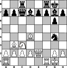 Partie-Notation im PGN-Format [Event "BDG 2"] [Site "www.mySchach.de"] [Date "2015.01.11"] [Round "1"] [White "kalle"] [Black "alibengali"] [ECO "D00"] [WhitemyELO "1582"] [BlackmyELO "1652"] [Result "0-1"] [TimeControl "10/2592000"] [WhiteDays "57"] [BlackDays "56"] [MySchachNr "97576"] 1. d4 d5 2. e4 dxe4 3. Nc3 Nf6 4. f3 exf3 5. Nxf3 g6 6. Bc4 Bg7 7. O-O O-O 8. Ne5 Nbd7 9. Bg5 c5 10. Nxd7 Bxd7 11. dxc5 Rc8 12. Qe2 Rxc5 13. Be3 Rc8 14. Bb3 Qc7 15. Bd4 Ng4 0-1 Stellungs-Notation im FEN-Format 2r2rk1/ppqbppbp/6p1/8/3B2n1/1BN5/PPPPQ1PP/R4RK1 - - - 6 16 Geschlagene Figuren Weiss: Geschlagene Figuren Schwarz: Klicken Sie auf eine geschlagene Figur um den gewünschten Zug darzustellen!