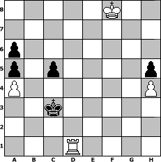Partie-Notation im PGN-Format [Event "Sommerlaune"] [Site "www.mySchach.de"] [Date "2009.07.15"] [Round "1"] [White "guinan"] [Black "espero"] [ECO "C00"] [WhitemyELO "1537"] [BlackmyELO "1681"] [Result "1-0"] [TimeControl "10/2592000"] [WhiteDays "129"] [BlackDays "139"] [MySchachNr "57532"] 1. e4 e6 2. d3 d5 3. Nd2 Nf6 4. f4 dxe4 5. dxe4 e5 6. f5 Bc5 7. Qf3 Nc6 8. c3 a6 9. Nb3 Ba7 10. Be3 Qe7 11. Bxa7 Nxa7 12. g4 h6 13. h4 Bd7 14. O-O-O Bc6 15. Bd3 O-O-O 16. Ne2 Nb5 17. g5 Rxd3 18. Qxd3 Nxe4 19. f6 gxf6 20. Na5 Nc5 21. Qh3+ Bd7 22. Qe3 b6 23. b4 bxa5 24. bxc5 Bc6 25. gxf6 Qe6 26. Qh3 Bxh1 27. Qxe6+ fxe6 28. Rxh1 Rf8 29. Rf1 Kd7 30. Kc2 Kc6 31. a4 Na7 32. Kd3 Kxc5 33. Ke4 Nc6 34. Nc1 Kd6 35. Nd3 h5 36. Nxe5 Nxe5 37. Rd1+ Kc5 38. Kxe5 Kc4 39. Kxe6 Kxc3 40. f7 c5 41. Ke7 Rh8 42. f8=Q Rxf8 43. Kxf8 1-0 Stellungs-Notation im FEN-Format 5K2/8/p7/p1p4p/P6P/2k5/8/3R4 - - - 0 43 Geschlagene Figuren Weiss: Geschlagene Figuren Schwarz: Klicken Sie auf eine geschlagene Figur um den gewünschten Zug darzustellen!