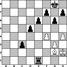 Partie-Notation im PGN-Format [Event "my schach.de darf nicht einschlafen!!"] [Site "www.mySchach.de"] [Date "2018.08.17"] [Round "2"] [White "lotchi"] [Black "Seneca"] [ECO "A04"] [WhitemyELO "1030"] [BlackmyELO "1469"] [Result "0-1"] [TimeControl "10/1728000"] [WhiteDays "08"] [BlackDays "20"] [MySchachNr "112901"] 1. Nf3 d6 2. d4 Nf6 3. Nc3 g6 4. Bg5 Bg7 5. e3 c6 6. Bd3 O-O 7. O-O b5 8. Bxf6 Bxf6 9. a3 a5 10. Be4 Ba6 11. h3 b4 12. axb4 Bxf1 13. Qxf1 d5 14. Bd3 Nd7 15. Ne5 Nxe5 16. dxe5 Bxe5 17. f4 Bxc3 18. bxc3 Qb6 19. Qe2 axb4 20. Rxa8 Rxa8 21. cxb4 Qxb4 22. Qg4 Ra1+ 23. Kh2 e6 24. h4 Re1 25. Qf3 c5 26. Qf2 c4 27. Bf1 Qb1 28. Kg1 Qc1 29. c3 Rxe3 30. g3 Qxc3 31. Kh2 Qe1 32. Qxe1 Rxe1 33. Bg2 c3 0-1 Stellungs-Notation im FEN-Format 6k1/5p1p/4p1p1/3p4/5P1P/2p3P1/6BK/4r3 - - - 0 34 Geschlagene Figuren Weiss: Geschlagene Figuren Schwarz: Klicken Sie auf eine geschlagene Figur um den gewünschten Zug darzustellen!