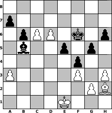 Partie-Notation im PGN-Format [Event "Oktober Gold"] [Site "www.mySchach.de"] [Date "2025.10.11"] [Round "1"] [White "alibengali"] [Black "Grubengeist"] [ECO "D02"] [WhitemyELO "1715"] [BlackmyELO "2171"] [Result "0-1"] [TimeControl "10/1728000"] [WhiteDays "064"] [BlackDays "100"] [MySchachNr "133714"] 1. d4 d5 2. Nf3 Nf6 3. c4 c6 4. Nc3 e6 5. e3 Be7 6. Bd3 dxc4 7. Bxc4 c5 8. O-O O-O 9. dxc5 Qxd1 10. Rxd1 Bxc5 11. Bd2 Nc6 12. a3 b6 13. b4 Be7 14. e4 Bb7 15. e5 Nd7 16. Bf4 Rad8 17. Rd2 h6 18. Rad1 Ndb8 19. Rxd8 Rxd8 20. Rxd8+ Bxd8 21. h3 Be7 22. Kf1 Nd7 23. Be2 g5 24. Bg3 Kg7 25. Ne4 Kg6 26. Bd3 Kg7 27. Nd6 Bxd6 28. exd6 f5 29. b5 Ncb8 30. Nd4 Kf6 31. Bc4 e5 32. Ne2 f4 33. Bh2 Nc5 34. Nc3 Ne4 35. Nxe4+ Bxe4 36. f3 Bf5 37. Bd5 Be6 38. Bc6 Nxc6 39. bxc6 Bc4+ 40. Ke1 Bb5 0-1 Stellungs-Notation im FEN-Format 8/p7/1pPP1k1p/1b2p1p1/5p2/P4P1P/6PB/4K3 - - - 3 41 Geschlagene Figuren Weiss: Geschlagene Figuren Schwarz: Klicken Sie auf eine geschlagene Figur um den gewünschten Zug darzustellen!
