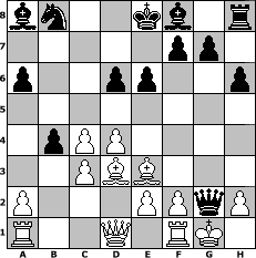 Partie-Notation im PGN-Format [Event "Einfach nur Schach 8"] [Site "www.mySchach.de"] [Date "2025.11.14"] [Round "2"] [White "Lohl"] [Black "faustballer"] [ECO "C01"] [WhitemyELO "1283"] [BlackmyELO "1457"] [Result "0-1"] [TimeControl "10/864000"] [WhiteDays "20"] [BlackDays "20"] [MySchachNr "133946"] 1. e4 e6 2. d4 h6 3. Nf3 a6 4. Be3 Nf6 5. Bd3 b5 6. O-O Bb7 7. Nc3 b4 8. Na4 Nxe4 9. Ne5 d6 10. Nc4 Qd7 11. Nab6 cxb6 12. Nxb6 Qc6 13. Nxa8 Bxa8 14. c4 Nc3 15. bxc3 Qxg2# 0-1 Stellungs-Notation im FEN-Format bn2kb1r/5pp1/p2pp2p/8/1pPP4/2PBB3/P3PPqP/R2Q1RK1 - kq - 0 16 Geschlagene Figuren Weiss: Geschlagene Figuren Schwarz: Klicken Sie auf eine geschlagene Figur um den gewünschten Zug darzustellen!