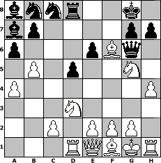 Partie-Notation im PGN-Format [Event "Die Eisenbahner sind wieder da!!"] [Site "www.mySchach.de"] [Date "2016.09.09"] [Round "1"] [White "larlinde"] [Black "espero"] [Variant "Fischerrandom"] [SetUp "1"] [FEN "bnnrqbkr/pppppppp/8/8/8/8/PPPPPPPP/BNNRQBKR w KQkq - 0 1"] [WhitemyELO "2146"] [BlackmyELO "1892"] [Result "1-0"] [TimeControl "10/1728000"] [WhiteDays "35"] [BlackDays "40"] [MySchachNr "104857"] 1. e4 c5 2. Nc3 e6 3. d4 a6 4. dxc5 Bxc5 5. Nd3 Ba7 6. a4 O-O 7. b4 f5 8. b5 fxe4 9. Nxe4 Qg6 10. h4 d5 11. Ng5 Rf6 12. Bxf6 1-0 Stellungs-Notation im FEN-Format bnnr2k1/bp4pp/p3pBq1/1P1p2N1/P6P/3N4/2P1PPP1/3RQBKR - KQ - 0 12 Geschlagene Figuren Weiss: Geschlagene Figuren Schwarz: Klicken Sie auf eine geschlagene Figur um den gewünschten Zug darzustellen!
