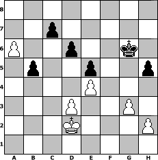 Partie-Notation im PGN-Format [Event "9. Frankenwaldsturnier"] [Site "www.mySchach.de"] [Date "2009.08.21"] [Round "1"] [White "ujack1961"] [Black "bluescreenlover"] [ECO "B00"] [WhitemyELO "1706"] [BlackmyELO "1335"] [Result "1-0"] [TimeControl "10/864000"] [WhiteDays "50"] [BlackDays "21"] [MySchachNr "58476"] 1. e4 b6 2. Bc4 Bb7 3. d3 e6 4. Nf3 Bd6 5. O-O Nc6 6. Be3 Qf6 7. Nc3 O-O-O 8. a4 Nh6 9. Nb5 Be5 10. Nxe5 Qxe5 11. Bxh6 gxh6 12. f4 Qg7 13. c3 e5 14. f5 Rhg8 15. Qf3 a6 16. Na3 Qg5 17. Bxf7 Rgf8 18. Bd5 Na5 19. Bxb7+ Nxb7 20. Nc4 d6 21. f6 Rd7 22. Qf5 Nc5 23. Qxg5 hxg5 24. Rad1 Rdf7 25. a5 b5 26. Ne3 Rxf6 27. Rxf6 Rxf6 28. Nd5 Rf8 29. b4 Ne6 30. g3 Kd8 31. c4 Nd4 32. cxb5 Nxb5 33. Rf1 Rxf1+ 34. Kxf1 g4 35. Nf6 Ke7 36. Nxg4 Kf7 37. Ke2 Kg6 38. Ne3 Nd4+ 39. Kd2 h5 40. Nd5 Nb5 41. Nc3 Nd4 42. b5 Nxb5 43. Nxb5 axb5 44. a6 1-0 Stellungs-Notation im FEN-Format 8/2p5/P2p2k1/1p2p2p/4P3/3P2P1/3K3P/8 - - - 0 44 Geschlagene Figuren Weiss: ![]() ![]() ![]() ![]() ![]() ![]() ![]() ![]() ![]() ![]() ![]() ![]() ![]() ![]() ![]() Geschlagene Figuren Schwarz: ![]() ![]() ![]() ![]() ![]() ![]() ![]() ![]() ![]() ![]() ![]() ![]() ![]() ![]() ![]() Klicken Sie auf eine geschlagene Figur um den gewünschten Zug darzustellen!