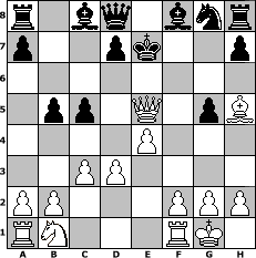 Partie-Notation im PGN-Format [Event "?"] [Site "www.mySchach.de"] [Date "2025.12.10"] [Round "?"] [White "jeremyt"] [Black "Alencar"] [ECO "B30"] [WhitemyELO "2150"] [BlackmyELO "1275"] [Result "1-0"] [TimeControl "10/864000"] [WhiteDays "16"] [BlackDays "18"] [MySchachNr "134042"] 1. e4 c5 2. Nf3 Nc6 3. d3 Nd4 4. c3 Nxf3+ 5. Qxf3 e5 6. Be2 b5 7. Qg3 f6 8. O-O g5 9. Bh5+ Ke7 10. Bxg5 fxg5 11. Qxe5# 1-0 Stellungs-Notation im FEN-Format r1bq1bnr/p2pk2p/8/1pp1Q1pB/4P3/2PP4/PP3PPP/RN3RK1 - - - 0 11 Geschlagene Figuren Weiss: Geschlagene Figuren Schwarz: Klicken Sie auf eine geschlagene Figur um den gewünschten Zug darzustellen!