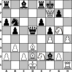 Partie eroeffnet am 03.10.2012, 00:04 Uhr und beendet am 26.10.2012, 18:39 Uhr Spieler weiss: wiesel Spieler schwarz: Macks wiesel hat die Partie gewonnen! | |