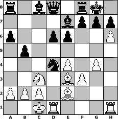 Partie-Notation im PGN-Format [Event "Winter 2018"] [Site "www.mySchach.de"] [Date "2018.01.10"] [Round "1"] [White "atlantis"] [Black "pepo47"] [ECO "B40"] [WhitemyELO "1897"] [BlackmyELO "2051"] [Result "0-1"] [TimeControl "10/2592000"] [WhiteDays "18"] [BlackDays "60"] [MySchachNr "110992"] 1. e4 c5 2. Nf3 e6 3. Nc3 Nc6 4. d4 cxd4 5. Nxd4 d6 6. Be3 Nf6 7. f3 a6 8. Qd2 Be7 9. g4 O-O 10. O-O-O Nxd4 11. Qxd4 Nd7 12. h4 Ne5 13. Be2 b5 14. h5 Nc6 15. h6 Nxd4 0-1 Stellungs-Notation im FEN-Format r1bq1rk1/4bppp/p2pp2P/1p6/3nP1P1/2N1BP2/PPP1B3/2KR3R - - - 0 16 Geschlagene Figuren Weiss: Geschlagene Figuren Schwarz: Klicken Sie auf eine geschlagene Figur um den gewünschten Zug darzustellen!
