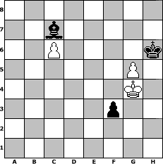 Partie-Notation im PGN-Format [Event "Der Beste hinter den 1900ern(4/10) oder 10 hoch 2"] [Site "www.mySchach.de"] [Date "2010.05.22"] [Round "1"] [White "ujack1961"] [Black "neve"] [ECO "B50"] [WhitemyELO "1640"] [BlackmyELO "1531"] [Result "1/2-1/2"] [TimeControl "10/864000"] [WhiteDays "10"] [BlackDays "10"] [MySchachNr "65695"] 1. e4 c5 2. Nf3 d6 3. Bc4 e6 4. O-O Nc6 5. d4 d5 6. exd5 exd5 7. Re1+ Be7 8. Bb5 Be6 9. Ne5 Qb6 10. Bxc6+ bxc6 11. dxc5 Bxc5 12. Nd3 Bd6 13. Nc3 Nf6 14. h3 O-O 15. Rb1 Rad8 16. Nf4 Bd7 17. Be3 Qc7 18. Qf3 Bf5 19. Nfxd5 Bh2+ 20. Kh1 Nxd5 21. Qxf5 Nxc3 22. bxc3 Rd5 23. Qf3 Be5 24. c4 Ra5 25. Bxa7 Rxa7 26. Re4 Rxa2 27. Re1 f6 28. Qe2 Rfa8 29. g3 Qc8 30. Kg2 Ra1 31. f4 Rxe1 32. Qxe1 Bd6 33. g4 h6 34. g5 hxg5 35. fxg5 fxg5 36. Qe2 Qf5 37. Re8+ Rxe8 38. Qxe8+ Kh7 39. Qxc6 Qxc2+ 40. Kf3 Qh2 41. Qe4+ g6 42. Qg4 Qf4+ 43. Qxf4 gxf4 44. c5 Bc7 45. c6 g5 46. Kg4 Kh6 47. h4 f3 48. hxg5+ 1/2-1/2 Stellungs-Notation im FEN-Format 8/2b5/2P4k/6P1/6K1/5p2/8/8 - - - 0 48 Geschlagene Figuren Weiss: Geschlagene Figuren Schwarz: Klicken Sie auf eine geschlagene Figur um den gewünschten Zug darzustellen!