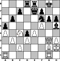 | Partie-Notation im PGN-Format [Event "mySchach Herbst-Open 2009"] [Site "www.mySchach.de"] [Date "2009.09.25"] [Round "1"] [White "bjeu"] [Black "Nowak"] [ECO "C44"] [WhitemyELO "1976"] [BlackmyELO "1866"] [Result "1-0"] [TimeControl "10/2592000"] [WhiteDays "19"] [BlackDays "27"] [MySchachNr "59274"] 1. e4 e5 2. Nf3 Nc6 3. g3 Nf6 4. Nc3 Bc5 5. Bg2 d6 6. d3 O-O 7. Na4 a5 8. Nxc5 dxc5 9. O-O Qd6 10. h3 h6 11. a4 Be6 12. b3 Rfe8 13. Be3 Rad8 14. Nd2 Qd7 15. Kh2 b6 16. f4 exf4 17. gxf4 Bg4 18. Qc1 Be2 19. Rg1 Nd4 20. Nc4 Bh5 21. Bxd4 cxd4 22. Qe1 Qe7 23. Qg3 g6 24. f5 1-0 Stellungs-Notation im FEN-Format 3rr1k1/2p1qp2/1p3npp/p4P1b/P1NpP3/1P1P2QP/2P3BK/R5R1 - - - 0 24 Geschlagene Figuren Weiss:                              Geschlagene Figuren Schwarz:                               Klicken Sie auf eine geschlagene Figur um den gewünschten Zug darzustellen!