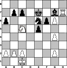 Partie eroeffnet am 27.05.2005, 00:00 Uhr und beendet am 30.05.2005, 07:48 Uhr Spieler weiss: Hondo Spieler schwarz: MichaelKnopf Hondo hat die Partie gewonnen! | |