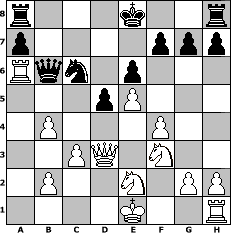 | Partie-Notation im PGN-Format [Event "Franz"] [Site "www.mySchach.de"] [Date "2004.06.01"] [Round "1"] [White "kalle"] [Black "NoBody"] [ECO "C05"] [WhitemyELO "1530"] [BlackmyELO "1710"] [Result "1-0"] [TimeControl "10/2592000"] [WhiteDays "52"] [BlackDays "60"] [MySchachNr "4916"] 1. e4 e6 2. d4 d5 3. Nd2 Nf6 4. e5 Nfd7 5. f4 c5 6. c3 Nc6 7. Ndf3 Qa5 8. Be3 b5 9. a3 Be7 10. Bd3 Qb6 11. Ne2 b4 12. dxc5 Bxc5 13. Bxc5 Nxc5 14. axb4 Nxd3+ 15. Qxd3 Ba6 16. Rxa6 1-0 Stellungs-Notation im FEN-Format r3k2r/p4ppp/Rqn1p3/3pP3/1P3P2/2PQ1N2/1P2N1PP/4K2R - Kkq - 0 16 Geschlagene Figuren Weiss:                              Geschlagene Figuren Schwarz:                               Klicken Sie auf eine geschlagene Figur um den gewünschten Zug darzustellen!