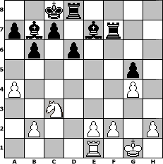 Partie eroeffnet am 15.05.2004, 00:02 Uhr und beendet am 27.06.2004, 12:51 Uhr Spieler weiss: Hobbykegler Spieler schwarz: OwainGwynedd OwainGwynedd hat die Partie gewonnen! | |