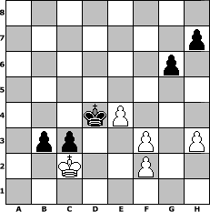 Partie-Notation im PGN-Format [Event "?"] [Site "www.mySchach.de"] [Date "2025.10.04"] [Round "?"] [White "peter58"] [Black "Campino1986"] [ECO "D30"] [WhitemyELO "1526"] [BlackmyELO "1558"] [Result "0-1"] [TimeControl "10/2592000"] [WhiteDays "148"] [BlackDays "111"] [MySchachNr "133698"] 1. d4 d5 2. c4 e6 3. a3 Nf6 4. Nc3 Nc6 5. Nf3 Ne4 6. e3 Nxc3 7. bxc3 Be7 8. Bd3 b6 9. O-O Bb7 10. cxd5 exd5 11. Ne5 Nxe5 12. dxe5 Qd7 13. a4 f6 14. Qh5+ Kd8 15. Rd1 c5 16. exf6 Bxf6 17. Bb2 Kc7 18. Qe2 g6 19. c4 Rhf8 20. cxd5 Bxd5 21. Bxf6 Rxf6 22. Be4 Rd6 23. Bf3 Rd8 24. Qb5 Bxf3 25. Qxd7+ R8xd7 26. Rxd6 Rxd6 27. gxf3 Rd3 28. Rc1 Kc6 29. Kf1 Kd5 30. Ke2 c4 31. Rd1 Rxd1 32. Kxd1 a6 33. Kc2 b5 34. axb5 axb5 35. Kc3 Kc5 36. e4 b4+ 37. Kd2 Kd4 38. h3 c3+ 39. Kc2 b3+ 0-1 Stellungs-Notation im FEN-Format 8/7p/6p1/8/3kP3/1pp2P1P/2K2P2/8 - - - 0 40 Geschlagene Figuren Weiss: Geschlagene Figuren Schwarz: Klicken Sie auf eine geschlagene Figur um den gewünschten Zug darzustellen!