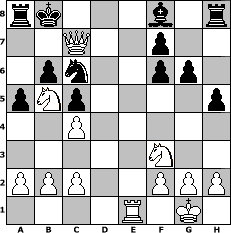 Partie eroeffnet am 10.08.2004, 00:03 Uhr und beendet am 16.08.2004, 00:30 Uhr Spieler weiss: Tarot Spieler schwarz: Evilduff Tarot hat die Partie gewonnen! | |