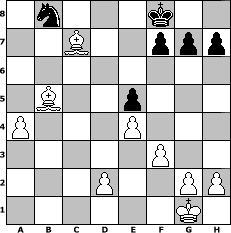 Partie-Notation im PGN-Format [Event "> 1500"] [Site "www.mySchach.de"] [Date "2010.03.18"] [Round "1"] [White "beowulf"] [Black "Master1"] [ECO "D20"] [WhitemyELO "1336"] [BlackmyELO "1261"] [Result "1-0"] [TimeControl "10/2592000"] [WhiteDays "90"] [BlackDays "89"] [MySchachNr "64111"] 1. d4 d5 2. c4 dxc4 3. e4 e5 4. Nf3 Bg4 5. Be2 Bxf3 6. Bxf3 Qxd4 7. Nc3 Bb4 8. O-O Bxc3 9. bxc3 Qxd1 10. Rxd1 Nc6 11. Ba3 Rd8 12. Be2 Nf6 13. f3 b5 14. Bc5 Nd7 15. Be3 a5 16. a4 b4 17. cxb4 Nxb4 18. Rac1 O-O 19. Bxc4 Nb6 20. Rxd8 Rxd8 21. Bb5 Nd3 22. Rxc7 Rc8 23. Rxc8+ Nxc8 24. Bxd3 Ne7 25. Bb6 Nc6 26. Bb5 Nb8 27. Bxa5 Kf8 28. Bc7 1-0 Stellungs-Notation im FEN-Format 1n3k2/2B2ppp/8/1B2p3/P3P3/5P2/3P2PP/6K1 - - - 2 28 Geschlagene Figuren Weiss: Geschlagene Figuren Schwarz: Klicken Sie auf eine geschlagene Figur um den gewünschten Zug darzustellen!