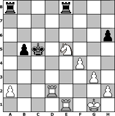 Partie-Notation im PGN-Format [Event "Schach Schach Schach....."] [Site "www.mySchach.de"] [Date "2018.10.23"] [Round "1"] [White "Steffi"] [Black "wolni55"] [ECO "D06"] [WhitemyELO "1502"] [BlackmyELO "1341"] [Result "0-1"] [TimeControl "10/2592000"] [WhiteDays "25"] [BlackDays "26"] [MySchachNr "113331"] 1. d4 d5 2. c4 h6 3. Nc3 Nf6 4. Nf3 Bf5 5. cxd5 Bh7 6. e3 Nxd5 7. Qb3 Nxc3 8. bxc3 b6 9. Ne5 Bg6 10. Bb5+ c6 11. Nxc6 Qd6 12. Nxb8+ Kd8 13. Nc6+ Kc7 14. Qc4 e6 15. Ba3 Qd5 16. Qxd5 exd5 17. Bxf8 Rhxf8 18. O-O f5 19. Ne7 Bh7 20. Nxd5+ Kd6 21. Nb4 Bg6 22. c4 Be8 23. Bxe8 Rfxe8 24. g3 Rec8 25. Rfc1 Ke6 26. d5+ Kd6 27. Nd3 g5 28. f4 g4 29. Nf2 Re8 30. e4 fxe4 31. Nxg4 e3 32. Re1 e2 33. Ne5 a6 34. Rxe2 b5 35. cxb5 axb5 36. Rae1 Kxd5 37. Rd2+ Kc5 0-1 Stellungs-Notation im FEN-Format r3r3/8/7p/1pk1N3/5P2/6P1/P2R3P/4R1K1 - - - 2 38 Geschlagene Figuren Weiss: Geschlagene Figuren Schwarz: Klicken Sie auf eine geschlagene Figur um den gewünschten Zug darzustellen!