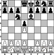 Partie-Notation im PGN-Format [Event "Trainingslager II"] [Site "www.mySchach.de"] [Date "2011.05.24"] [Round "2"] [White "micha62"] [Black "Steppenwolf"] [ECO "D00"] [WhitemyELO "1165"] [BlackmyELO "1115"] [Result "0-1"] [TimeControl "10/1728000"] [WhiteDays "00"] [BlackDays "14"] [MySchachNr "74145"] 1. d4 d5 2. e4 Nc6 3. e5 Bf5 4. e6 Bxe6 0-1 Stellungs-Notation im FEN-Format r2qkbnr/ppp1pppp/2n1b3/3p4/3P4/8/PPPP1PPP/RNBQKBNR - KQkq - 0 5 Geschlagene Figuren Weiss: Geschlagene Figuren Schwarz: Klicken Sie auf eine geschlagene Figur um den gewünschten Zug darzustellen!