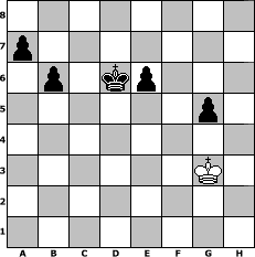 Partie-Notation im PGN-Format [Event "1. Weltmeisterschaft @ myschach.de"] [Site "www.mySchach.de"] [Date "2006.09.15"] [Round "1"] [White "Greenhorn"] [Black "ujack1961"] [ECO "A56"] [WhitemyELO "1493"] [BlackmyELO "1774"] [Result "0-1"] [TimeControl "10/2592000"] [WhiteDays "139"] [BlackDays "150"] [MySchachNr "28471"] 1. d4 Nf6 2. c4 c5 3. Nc3 cxd4 4. Qxd4 Nc6 5. Qd2 e6 6. e3 Bb4 7. Bd3 Qa5 8. Nf3 Bxc3 9. bxc3 Ne5 10. Nxe5 Qxe5 11. f4 Qc5 12. Qf2 d5 13. cxd5 Qxc3+ 14. Qd2 Qxa1 15. O-O Nxd5 16. Bb5+ Bd7 17. Bxd7+ Kxd7 18. Qb2 Qxb2 19. Bxb2 Nxe3 20. Re1 Nd5 21. Bxg7 Rhg8 22. Bh6 Rg6 23. Bg5 f6 24. Bh4 Nxf4 25. g3 Nd5 26. Kf2 Rc8 27. Re2 Rg4 28. Kf3 Rb4 29. Kg2 Rc1 30. Rf2 Ke7 31. Kh3 h5 32. a3 Rbc4 33. Rb2 b6 34. Ra2 Nc3 35. Rf2 Ne4 36. Rf4 Ng5+ 37. Bxg5 fxg5 38. Rf2 h4 39. Rg2 R1c3 40. Ra2 Ra4 41. Kg2 hxg3 42. hxg3 Raxa3 43. Rxa3 Rxa3 44. Kh3 Rxg3+ 45. Kxg3 Kd6 0-1 Stellungs-Notation im FEN-Format 8/p7/1p1kp3/6p1/8/6K1/8/8 - - - 1 46 Geschlagene Figuren Weiss: ![]() ![]() ![]() ![]() ![]() ![]() ![]() ![]() ![]() ![]() ![]() ![]() ![]() ![]() ![]() Geschlagene Figuren Schwarz: ![]() ![]() ![]() ![]() ![]() ![]() ![]() ![]() ![]() ![]() ![]() ![]() ![]() ![]() ![]() Klicken Sie auf eine geschlagene Figur um den gewünschten Zug darzustellen!