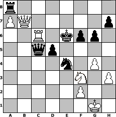 Partie eroeffnet am 14.08.2006, 00:10 Uhr und beendet am 20.08.2006, 14:11 Uhr Spieler weiss: ujack1961 Spieler schwarz: crca108 ujack1961 hat die Partie gewonnen! | |