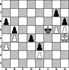Partie-Notation im PGN-Format [Event "Auf gehts zum Pfingstturnier 2020"] [Site "www.mySchach.de"] [Date "2020.06.01"] [Round "1"] [White "augustus"] [Black "Joschi"] [ECO "B10"] [WhitemyELO "1205"] [BlackmyELO "1598"] [Result "0-1"] [TimeControl "10/2592000"] [WhiteDays "28"] [BlackDays "30"] [MySchachNr "118501"] 1. e4 c6 2. Bc4 d5 3. exd5 cxd5 4. Bb3 Nf6 5. d4 Nc6 6. c3 Bf5 7. Bc2 Bxc2 8. Qxc2 e6 9. Bg5 Be7 10. Nf3 O-O 11. O-O h6 12. Bxf6 Bxf6 13. Na3 a6 14. Qd2 b5 15. Nc2 Na5 16. b3 Rc8 17. Kh1 Qc7 18. Nb4 Qxc3 19. Qxc3 Rxc3 20. Rac1 Rxc1 21. Rxc1 Ra8 22. g3 Kf8 23. h4 Ke7 24. Rc7+ Ke8 25. g4 Bd8 26. Rc3 Kd7 27. Ne5+ Ke7 28. f4 f6 29. Nec6+ Nxc6 30. Nxc6+ Kd7 31. Nxd8 Rxd8 32. h5 Rc8 33. Rxc8 Kxc8 34. a3 Kc7 35. Kg1 Kd6 36. b4 e5 37. dxe5+ fxe5 38. f5 e4 39. Kf2 Ke5 40. Kg3 d4 41. Kh4 e3 42. g5 Kxf5 0-1 Stellungs-Notation im FEN-Format 8/6p1/p6p/1p3kPP/1P1p3K/P3p3/4P3/8 - - - 0 43 Geschlagene Figuren Weiss: Geschlagene Figuren Schwarz: Klicken Sie auf eine geschlagene Figur um den gewünschten Zug darzustellen!