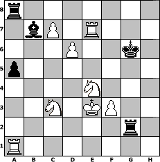 Partie-Notation im PGN-Format [Event "Schach dem "Nikolaus II""] [Site "www.mySchach.de"] [Date "2010.11.13"] [Round "1"] [White "espero"] [Black "Rotstift10"] [ECO "D00"] [WhitemyELO "1588"] [BlackmyELO "1568"] [Result "1-0"] [TimeControl "10/2592000"] [WhiteDays "144"] [BlackDays "144"] [MySchachNr "69831"] 1. d4 d5 2. Bg5 g6 3. e3 Bg7 4. c4 Nf6 5. Nc3 c6 6. Nf3 Bf5 7. Qb3 Qb6 8. c5 Qxb3 9. axb3 Ne4 10. b4 Nxg5 11. Nxg5 e5 12. Nf3 e4 13. Nd2 O-O 14. b5 Nd7 15. bxc6 bxc6 16. b4 a5 17. b5 Nxc5 18. bxc6 Nd3+ 19. Bxd3 exd3 20. Nxd5 Be6 21. Nf4 Rfe8 22. O-O Bg4 23. f3 Bf5 24. Kf2 g5 25. Nd5 Bxd4 26. exd4 Re2+ 27. Kg3 Kg7 28. Rfd1 h5 29. h4 f6 30. c7 Ra6 31. Ne4 Bc8 32. Rxd3 gxh4+ 33. Kxh4 Rxg2 34. Nexf6 Rh2+ 35. Kg5 Kf7 36. Re3 Rg2+ 37. Kxh5 Rh2+ 38. Kg5 Rg2+ 39. Kf4 Rd2 40. Ra4 Rc2 41. Re7+ Kg6 42. Ne4 Bb7 43. Ndc3 Ra8 44. d5 Rf8+ 45. Ke3 Ra8 46. Ra1 Rg2 47. d6 1-0 Stellungs-Notation im FEN-Format r7/1bP1R3/3P2k1/p7/4N3/2N1KP2/6r1/R7 - - - 0 47 Geschlagene Figuren Weiss: Geschlagene Figuren Schwarz: Klicken Sie auf eine geschlagene Figur um den gewünschten Zug darzustellen!