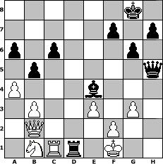 Partie-Notation im PGN-Format [Event "8. Wikinger-Klubmeisterschaft"] [Site "www.mySchach.de"] [Date "2012.08.01"] [Round "1"] [White "Seneca"] [Black "bane"] [ECO "E00"] [WhitemyELO "1428"] [BlackmyELO "1945"] [Result "0-1"] [TimeControl "10/1728000"] [WhiteDays "20"] [BlackDays "01"] [MySchachNr "83077"] 1. d4 Nf6 2. c4 e6 3. e3 g6 4. a3 Nc6 5. Bd3 Bg7 6. Nf3 O-O 7. O-O d5 8. b3 e5 9. dxe5 Ng4 10. Bb2 Ncxe5 11. Nxe5 Nxe5 12. Bxe5 Bxe5 13. Ra2 Be6 14. Rc2 dxc4 15. Bxc4 Bf5 16. Rd2 Qe7 17. Qe2 c6 18. Rc1 Rfd8 19. Rxd8+ Rxd8 20. a4 a6 21. Rd1 b5 22. Bd3 Bxh2+ 23. Kxh2 Qd6+ 24. g3 Bxd3 25. Qb2 Qc5 26. Rc1 Qh5+ 27. Kg2 Be4+ 28. Kf1 Rd1+ 0-1 Stellungs-Notation im FEN-Format 6k1/5p1p/p1p3p1/1p5q/P3b3/1P2P1P1/1Q3P2/1NRr1K2 - - - 8 29 Geschlagene Figuren Weiss: Geschlagene Figuren Schwarz: Klicken Sie auf eine geschlagene Figur um den gewünschten Zug darzustellen!