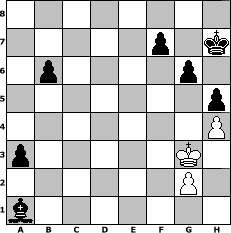 Partie-Notation im PGN-Format [Event "1. Chess Cafe Mannschaftsturnier 2017"] [Site "www.mySchach.de"] [Date "2017.01.29"] [Round "1"] [Board "3"] [White "Master1"] [Black "MiLi"] [ECO "A45"] [WhitemyELO "1317"] [BlackmyELO "1525"] [Result "0-1"] [TimeControl "10/3456000"] [WhiteDays "37"] [BlackDays "40"] [MySchachNr "106670"] 1. d4 Nf6 2. e3 e6 3. Bd3 d5 4. Nf3 c5 5. c3 Be7 6. Nbd2 O-O 7. O-O b6 8. Re1 Nbd7 9. e4 cxd4 10. cxd4 dxe4 11. Nxe4 Bb7 12. Bg5 h6 13. Nxf6+ Nxf6 14. Bd2 Rc8 15. Rc1 Rxc1 16. Bxc1 Bxf3 17. Qxf3 Qxd4 18. Rd1 Qe5 19. h3 Rd8 20. b3 Nd5 21. Bc4 h5 22. Bxd5 Rxd5 23. Rxd5 exd5 24. Bf4 Qa1+ 25. Kh2 Qxa2 26. Qxd5 Qxf2 27. Qa8+ Kh7 28. Qe4+ g6 29. Bg3 Qf6 30. Be5 Qe6 31. Qd4 Qxb3 32. Bh8 Bf8 33. Be5 a5 34. h4 a4 35. Qb2 Qxb2 36. Bxb2 a3 37. Ba1 Bg7 38. Kg3 Bxa1 0-1 Stellungs-Notation im FEN-Format 8/5p1k/1p4p1/7p/7P/p5K1/6P1/b7 - - - 0 39 Geschlagene Figuren Weiss: Geschlagene Figuren Schwarz: Klicken Sie auf eine geschlagene Figur um den gewünschten Zug darzustellen!