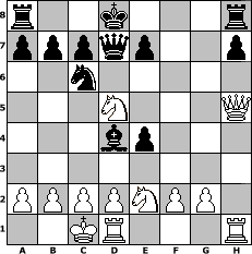 Partie-Notation im PGN-Format [Event "Aljechin zu Mittag"] [Site "www.mySchach.de"] [Date "2006.04.18"] [Round "1"] [White "torsten64"] [Black "Andreas"] [ECO "A83"] [WhitemyELO "1994"] [BlackmyELO "1563"] [Result "1-0"] [TimeControl "10/1728000"] [WhiteDays "20"] [BlackDays "20"] [MySchachNr "24679"] 1. d4 f5 2. e4 fxe4 3. Nc3 Nf6 4. Bg5 g6 5. h4 d5 6. h5 Bg4 7. Be2 Bxe2 8. Qxe2 Nc6 9. O-O-O Qd7 10. hxg6 Bg7 11. Bxf6 Bxf6 12. g7 Bxg7 13. Qh5+ Kd8 14. Nxd5 Bxd4 15. Ne2 1-0 Stellungs-Notation im FEN-Format r2k3r/pppqp2p/2n5/3N3Q/3bp3/8/PPPPNPP1/2KR3R - - - 1 15 Geschlagene Figuren Weiss: Geschlagene Figuren Schwarz: Klicken Sie auf eine geschlagene Figur um den gewünschten Zug darzustellen!