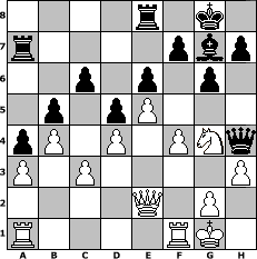Partie-Notation im PGN-Format [Event "Mal raus aus der Routine"] [Site "www.mySchach.de"] [Date "2014.09.06"] [Round "1"] [White "Vahl1"] [Black "dshortym"] [ECO "B06"] [WhitemyELO "1731"] [BlackmyELO "1765"] [Result "1/2-1/2"] [TimeControl "10/2592000"] [WhiteDays "19"] [BlackDays "23"] [MySchachNr "95776"] 1. e4 g6 2. d4 Bg7 3. f4 d5 4. e5 Nh6 5. Nf3 O-O 6. Bd3 Nc6 7. O-O Bg4 8. c3 a6 9. h3 Bf5 10. Bxf5 Nxf5 11. Qe1 e6 12. b3 Nfe7 13. Na3 a5 14. Nb5 a4 15. Ba3 Bh6 16. Nh2 Bg7 17. Ng4 Re8 18. Ne3 Na7 19. Qe2 Qd7 20. Nxa7 Rxa7 21. Bxe7 Qxe7 22. b4 c6 23. a3 b5 24. Ng4 Qh4 1/2-1/2 Stellungs-Notation im FEN-Format 4r1k1/r4pbp/2p1p1p1/1p1pP3/pP1P1PNq/P1P4P/4Q1P1/R4RK1 - - - 2 25 Geschlagene Figuren Weiss: ![]() ![]() ![]() ![]() ![]() ![]() ![]() ![]() ![]() ![]() ![]() ![]() ![]() ![]() ![]() Geschlagene Figuren Schwarz: ![]() ![]() ![]() ![]() ![]() ![]() ![]() ![]() ![]() ![]() ![]() ![]() ![]() ![]() ![]() Klicken Sie auf eine geschlagene Figur um den gewünschten Zug darzustellen!