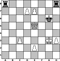 Partie eroeffnet am 29.12.2007, 00:01 Uhr und beendet am 24.01.2008, 20:51 Uhr Spieler weiss: Andylein1989 Spieler schwarz: crca108 Andylein1989 hat die Partie gewonnen! | |
