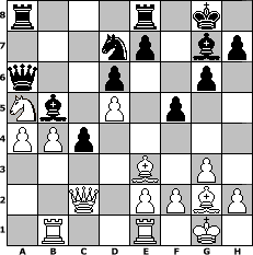 Partie-Notation im PGN-Format [Event "Open"] [Site "www.mySchach.de"] [Date "2016.01.17"] [Round "1"] [White "Helmut48"] [Black "Attila89"] [ECO "A58"] [WhitemyELO "1969"] [BlackmyELO "1625"] [Result "1-0"] [TimeControl "10/1728000"] [WhiteDays "57"] [BlackDays "59"] [MySchachNr "102151"] 1. d4 Nf6 2. c4 c5 3. d5 b5 4. cxb5 a6 5. bxa6 Bxa6 6. Nc3 g6 7. g3 Bg7 8. Bg2 d6 9. Nf3 O-O 10. O-O Nbd7 11. Rb1 Ne8 12. Re1 Qb6 13. Bg5 f6 14. Bd2 Nc7 15. Qc2 Nb5 16. Nxb5 Bxb5 17. b4 c4 18. Be3 Qa6 19. Nd4 Rfb8 20. Nc6 Re8 21. Na5 f5 22. a4 1-0 Stellungs-Notation im FEN-Format r3r1k1/3np1bp/q2p2p1/Nb1P1p2/PPp5/4B1P1/2Q1PPBP/1R2R1K1 - - - 0 22 Geschlagene Figuren Weiss: Geschlagene Figuren Schwarz: Klicken Sie auf eine geschlagene Figur um den gewünschten Zug darzustellen!